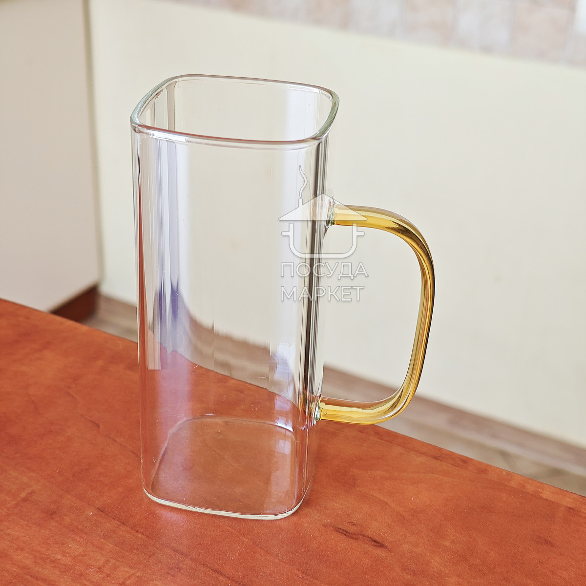 Скляна квадратна висока хайбол кухоль 350 мл Elegance з жовтою ручкою