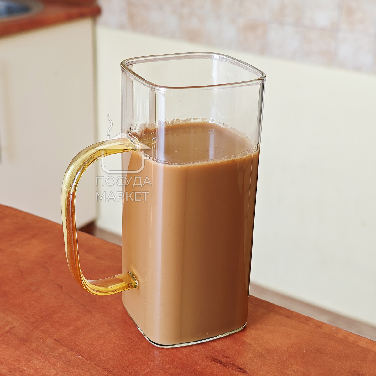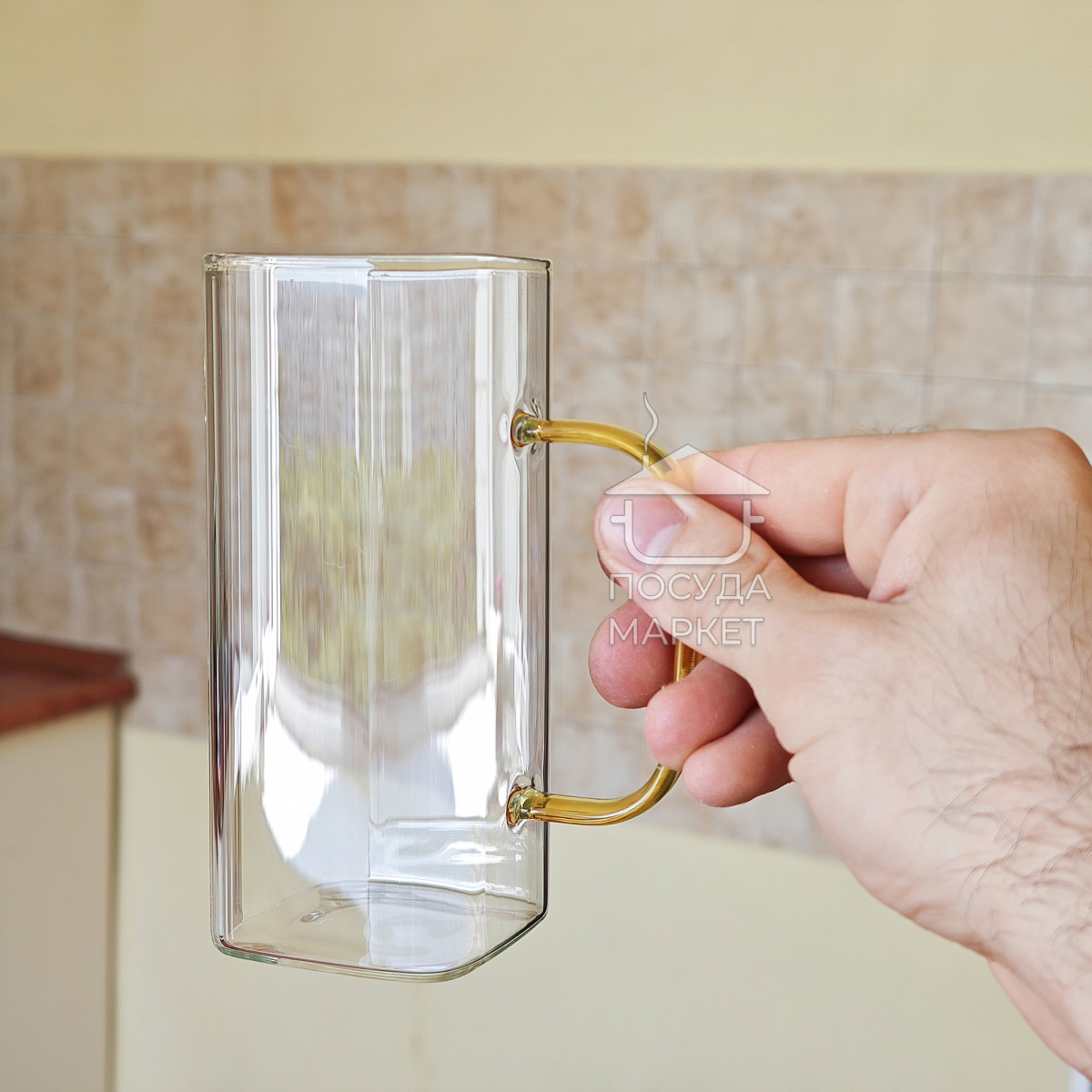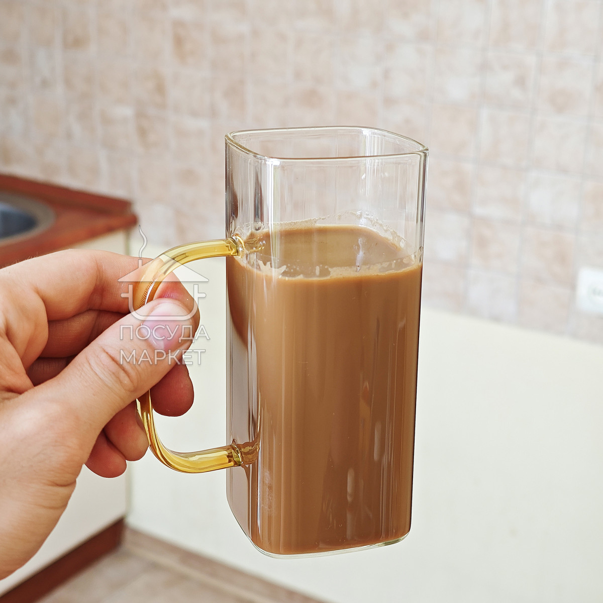 Кружка з мінімальним дизайном та прямокутними формами. Прямі лінії та кути надають їй сучасного та стильного вигляду. Завдяки тонкому, але міцному склу та зручній ручці, кухоль підходить як для гарячих напоїв, так і для холодних. Прозорість матеріалу підкреслює шари напоїв, роблячи її ідеальною для подачі кави, латте чи інших багатошарових коктейлів. Стійке дно та зручна форма ручки роблять її максимально практичною та елегантною.