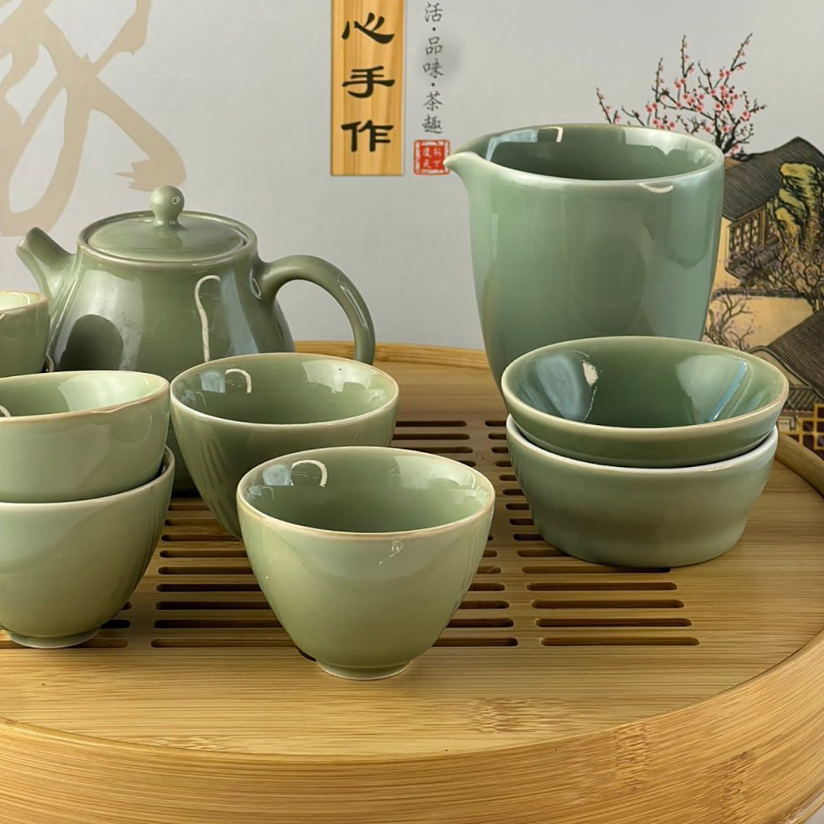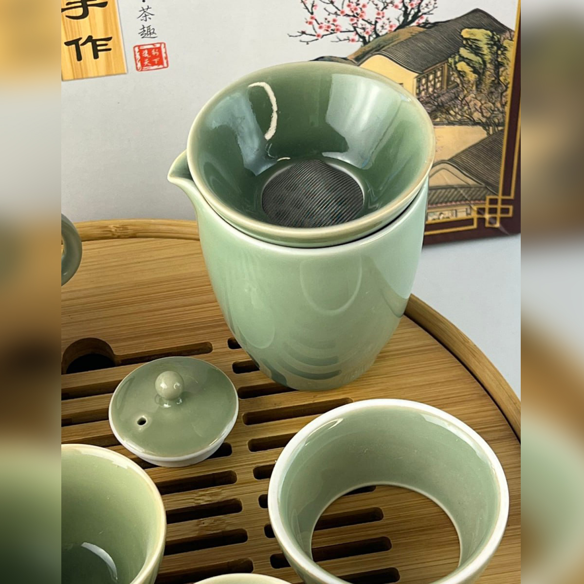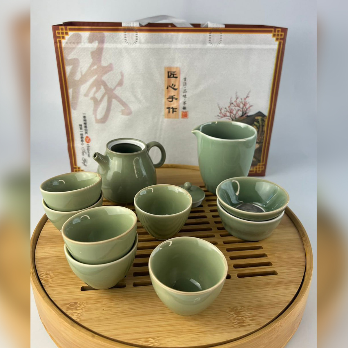 Витончений чайний набір у стилі традиційної східної чайної церемонії — ідеальний вибір для поціновувачів спокійного відпочинку та естетики. Набір виконаний у благородному селадоновому відтінку, що надає посуду особливого шарму та створює атмосферу гармонії.